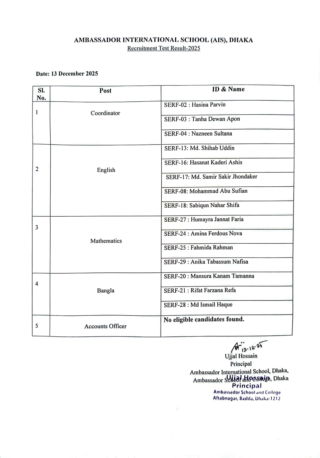 Recruitment Written Test Result-2025